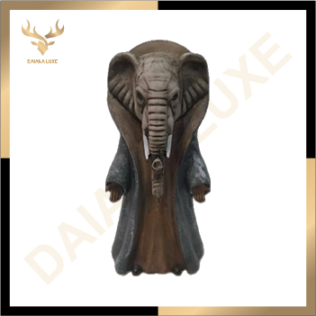 این اثر از فایبرگلاس مقاوم و نشکن ساخته شده و با رنگآمیزی ظریف و پرداخت سطح دقیق، جلوهای زیبا و بادوام دارد. طراحی دقیق چهره و حالت بدن فیل، حس قدرت درونی و فروتنی را به شکلی نمادین نمایش میدهد.